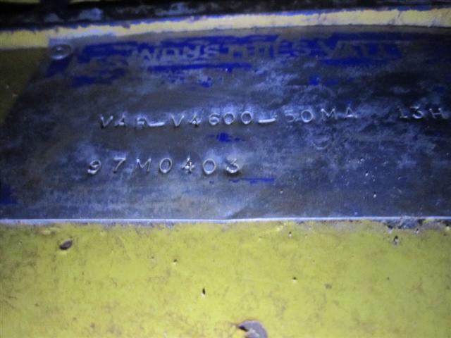 VAR V4600 50MA. SN: 97M0403. 4 point pinup (receiving width for loader arms 35 1/2 inches inside, 47 1/2 inches outside, 80mm pin size). Vertical lock pins 24 inches on center. (receiving width for toolhooks 18 inches to 30 inches).